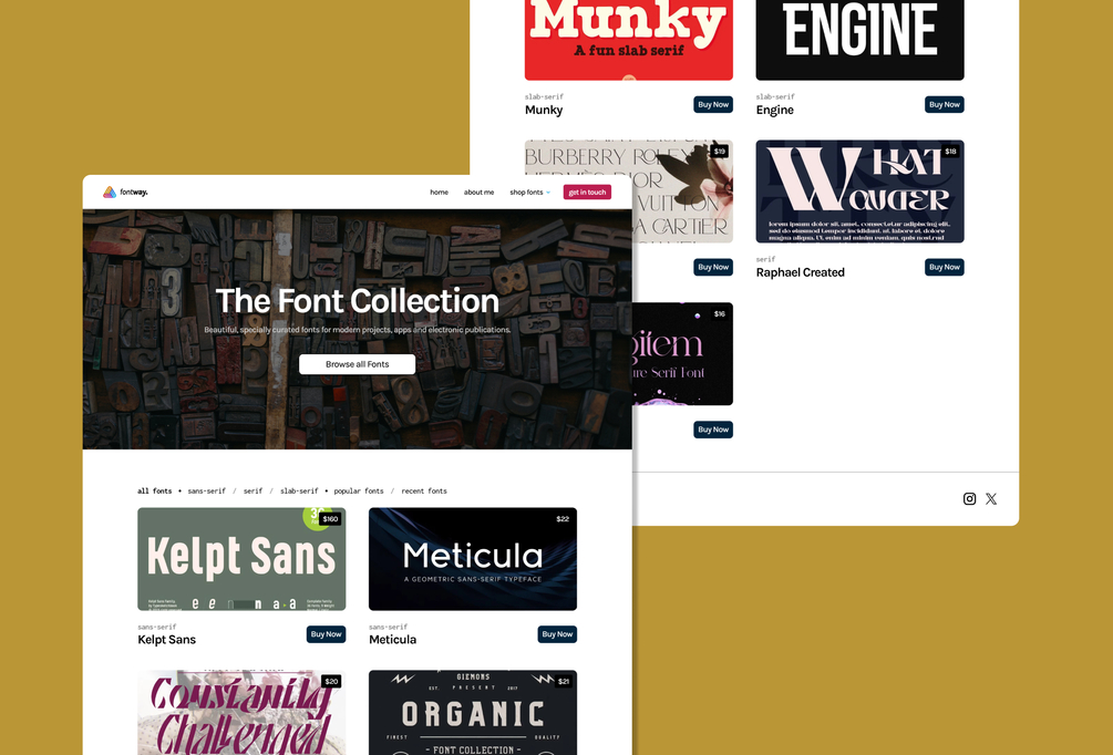 This is a beautiful, custom-made Framer site template for font designers to list their custom fonts on, acting as your own personal portfolio and shop, having native Lemon Squeezy integration and a fully-functional shop system, the user can seamlessly browse and buy fonts directly from your site. This template includes: